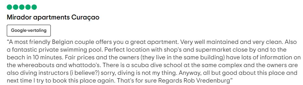Seit ich ein kleines Kind war, war ich besessen von Weltkarten und Geographie. Meine Eltern sind beide begeisterte Reisende, daher hatte ich das Glück, Europa von klein auf zu erkunden. Mein erster Besuch auf Curaçao war 2008 und es fühlte sich wie zu Hause an. Nachdem ich mehr als 30 Länder und 5 Kontinente bereist hatte, beschloss ich, 2018 nach Curaçao zu ziehen und Mirador-Apartments zu kaufen, um meinen Gästen ein unvergessliches Erlebnis zu bieten.